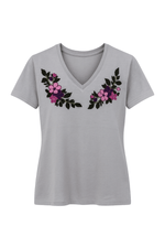 Polo Gris Cuello V con 2 Bordados