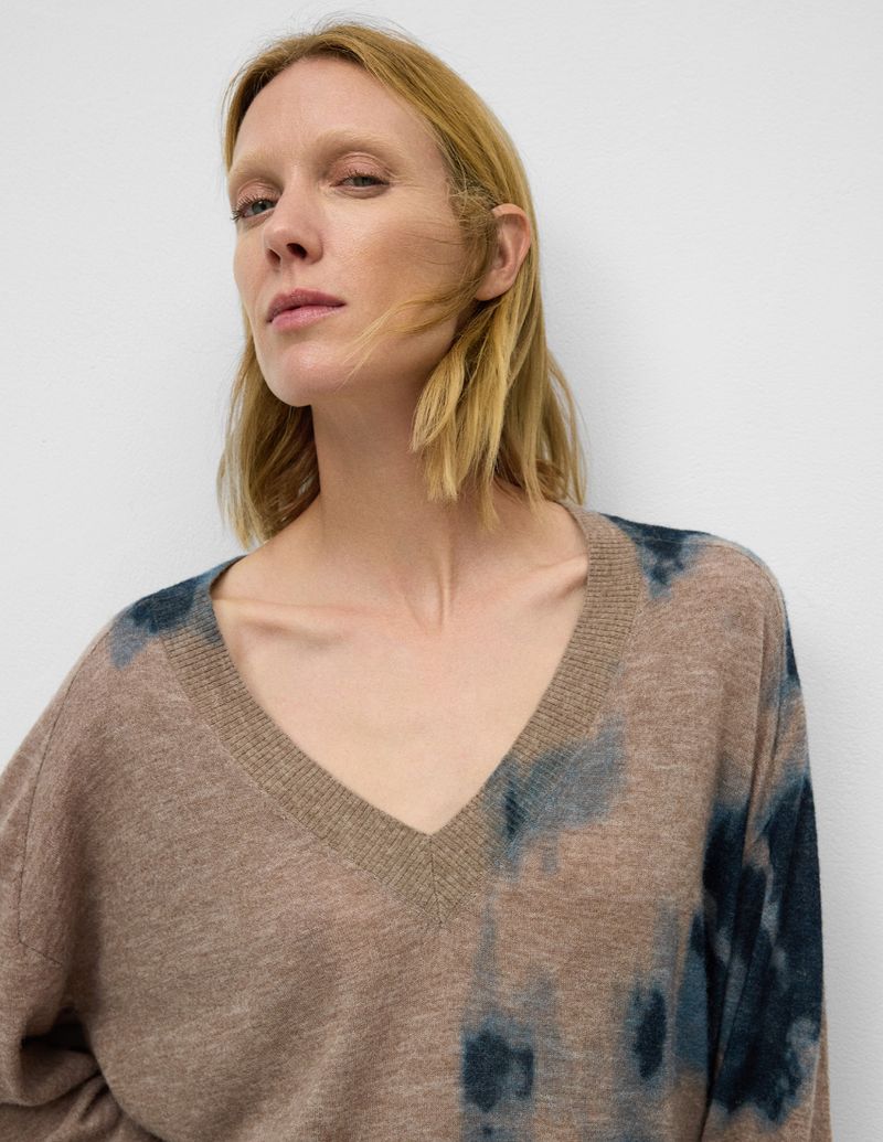 Polo Mujer Color Topo Estampado Lana Merino 48% Poliamida 35% Alpaca 17%