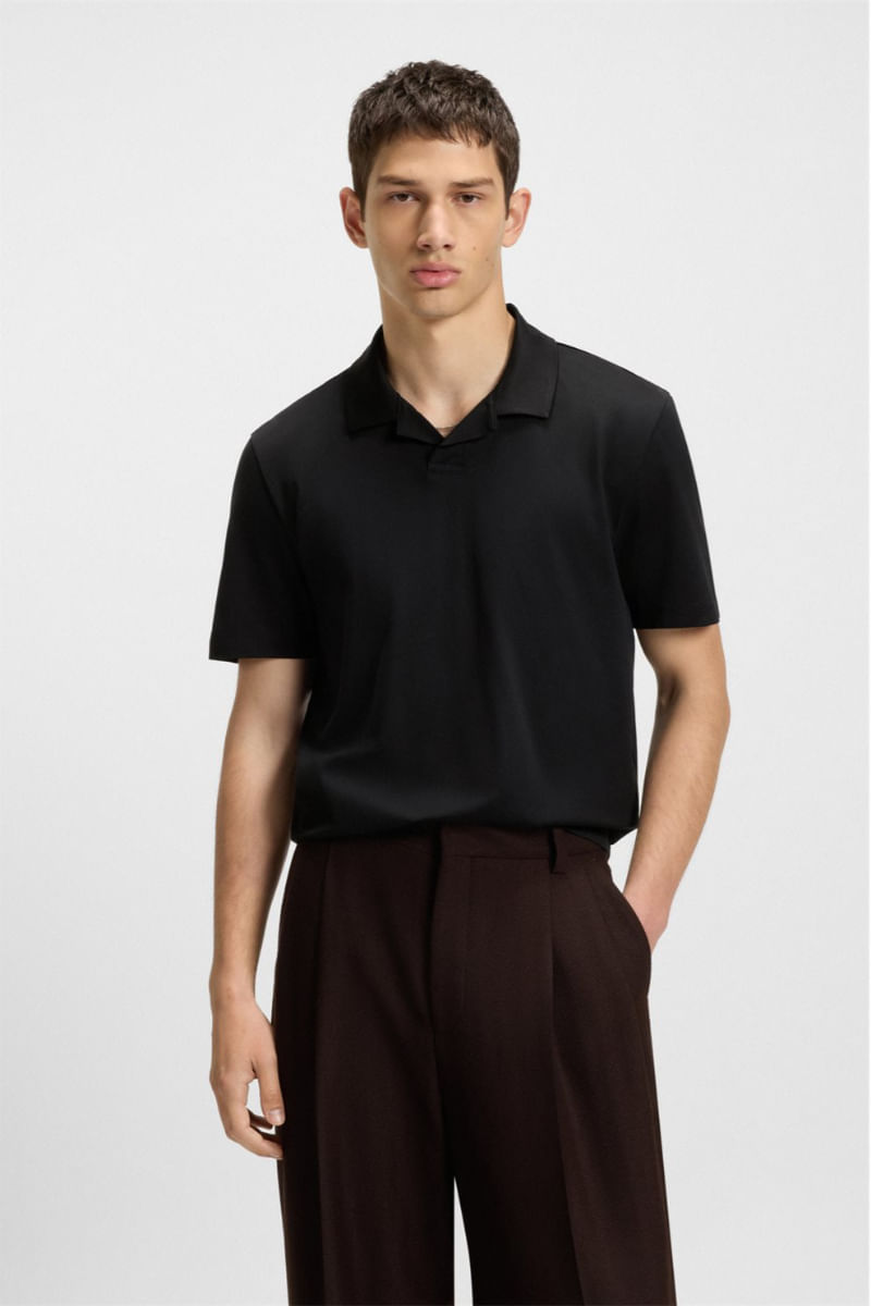 Este polo de algodón elástico mercerizado es una versión elegante de un diseño clásico. Slim fit con sencillo cuello modelo Johnny.