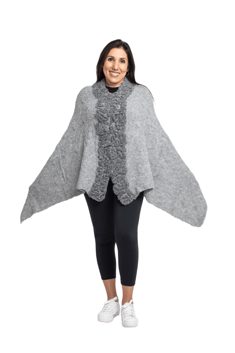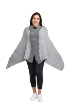 Poncho hecho a mano 100% Handmade, cuello V con tejido de trenzas sobrias disimuldas, de textura abrigadora con un detalle frontal de tejido torcido Es un tipo de prenda especialmente para el invierno, no requiere de mucha ropa al interior de la prenda, sule usarse con ropa casual o ejecutiva