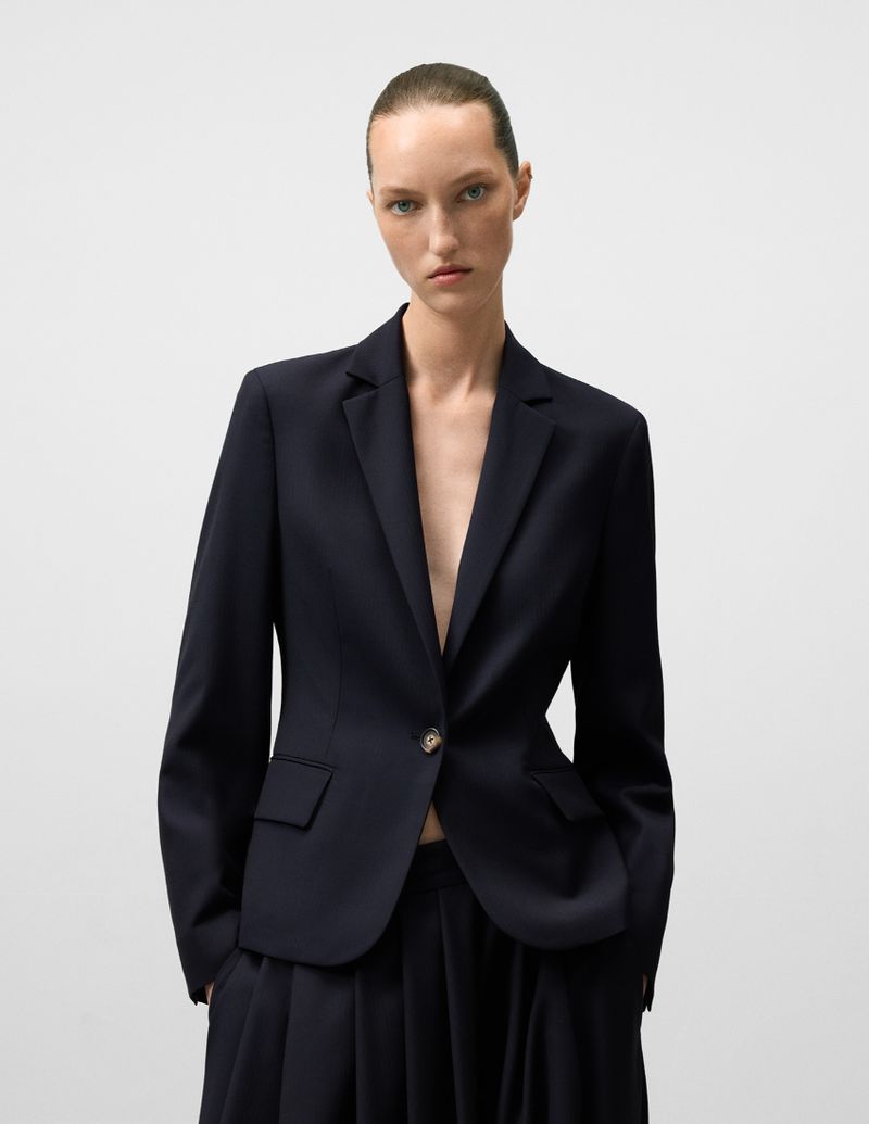 Saco Mujer Color Azul Marino Exterior : Poliester 55% Lana Merino 30% Viscosa 15%