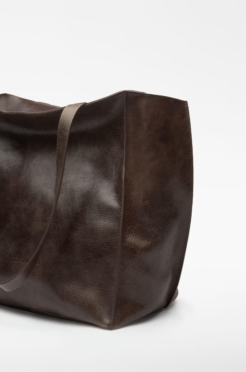 Shopper grande Orión piel responsable craquelada mujer. Un compartimento. Cierre cremallera. Bolsa interior en canvas con cierre cremallera. Asas de hombro. Logo grabado.