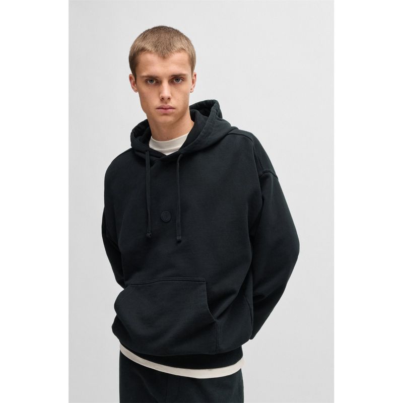 Sudadera con capucha fácil de llevar confeccionada en rizo de algodón con efecto lavado de HUGO. Esta prenda tiene un corte holgado y lleva el logotipo Happy HUGO.
