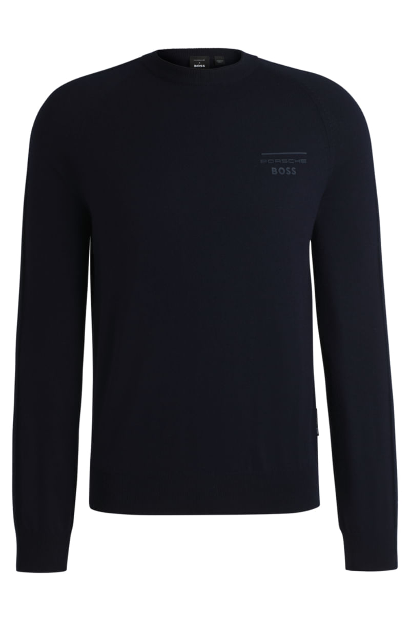 Suéter de lana virgen Porsche x BOSS con detalles en las mangas.