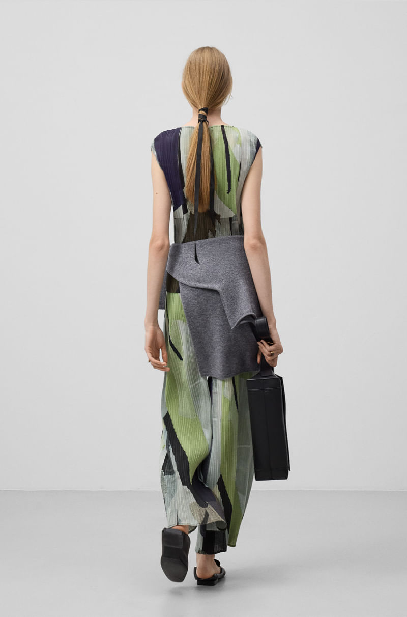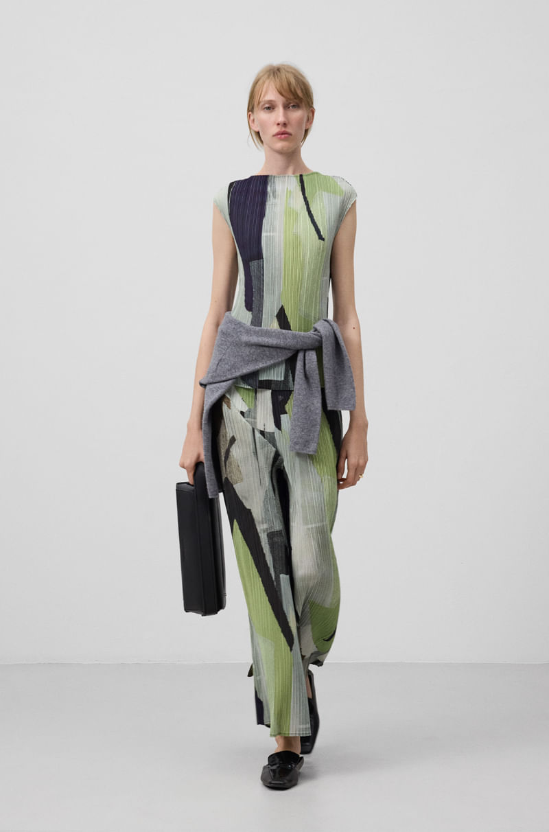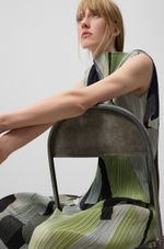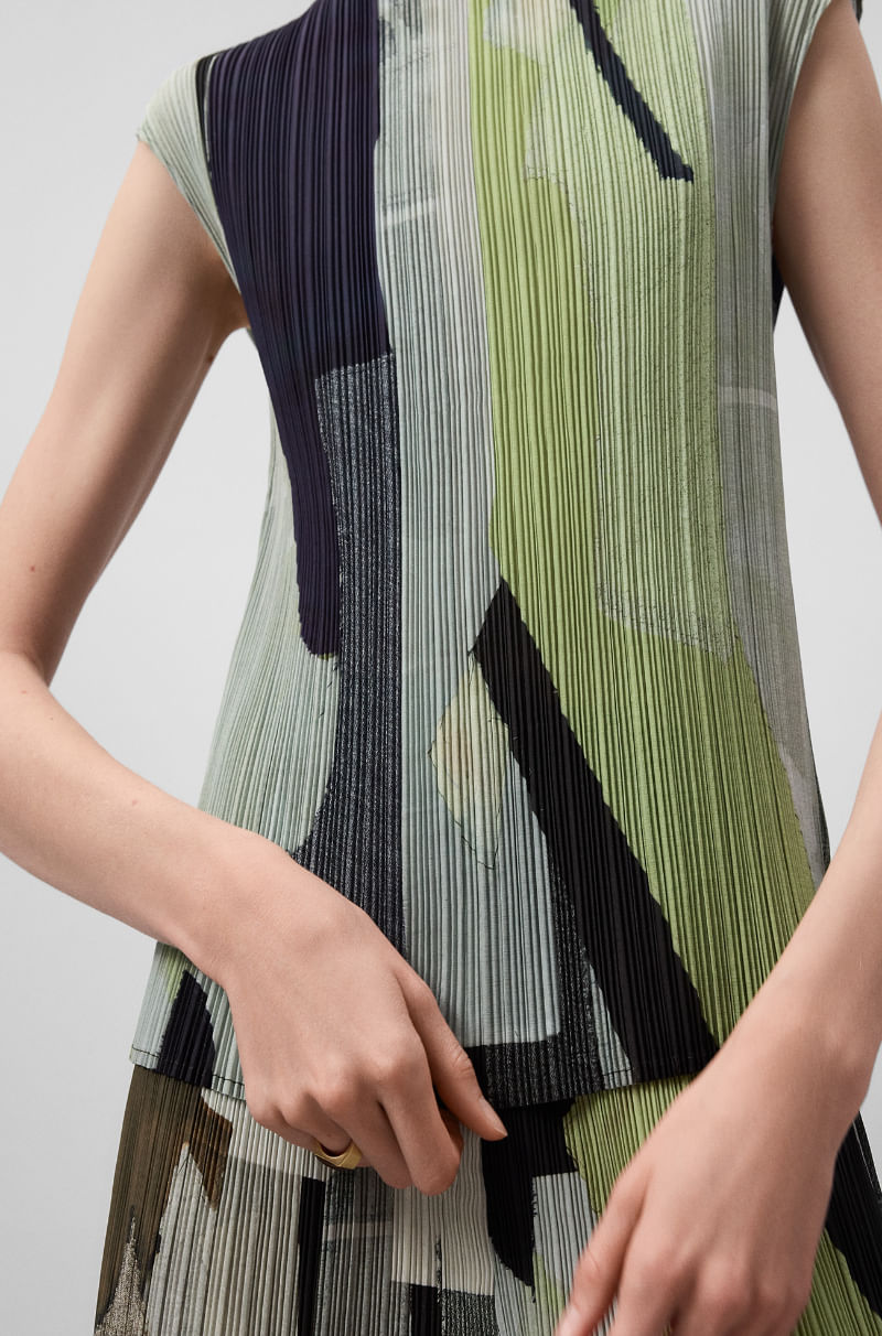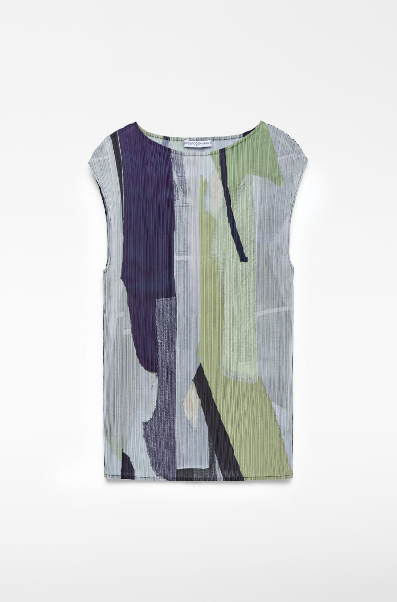 Top crinkle estampado mujer. Escote barco. Manga sisa.