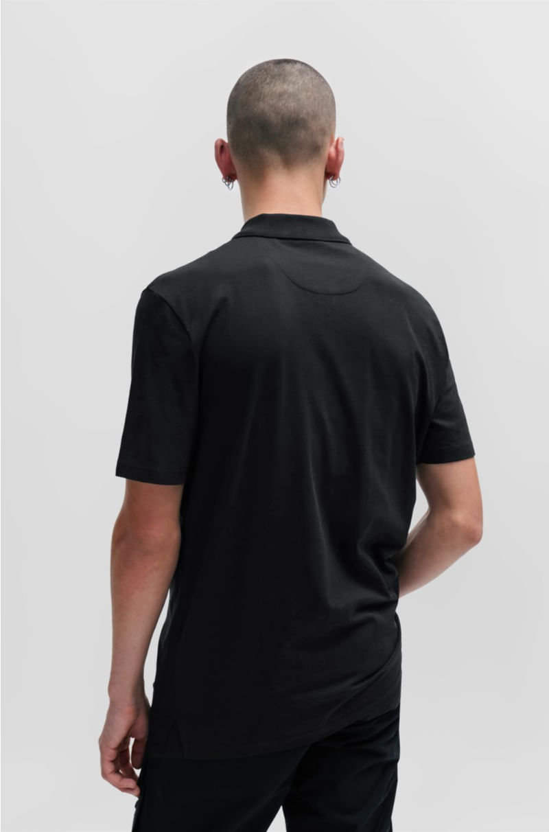 Un polo regular fit en mezcla de algodón elástico flameado con tapeta de cremallera y logo estampado.