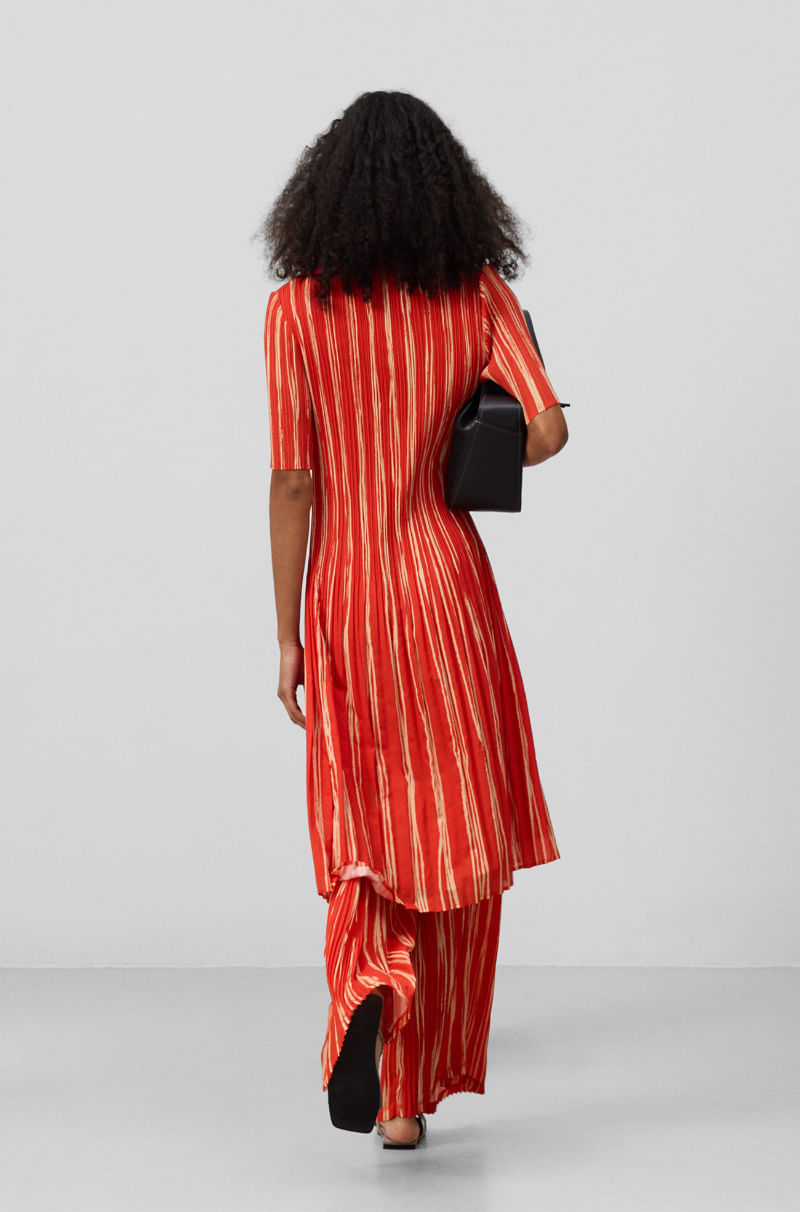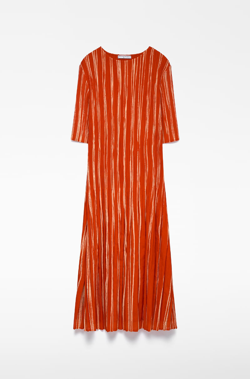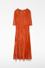 Vestido crinkle bicolor mujer. Cuello barco. Manga corta sobre codo.