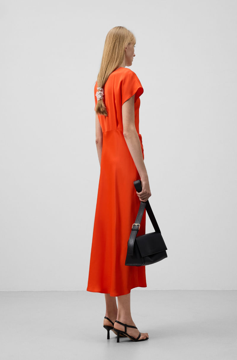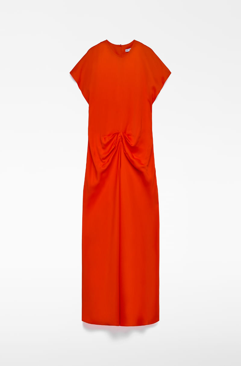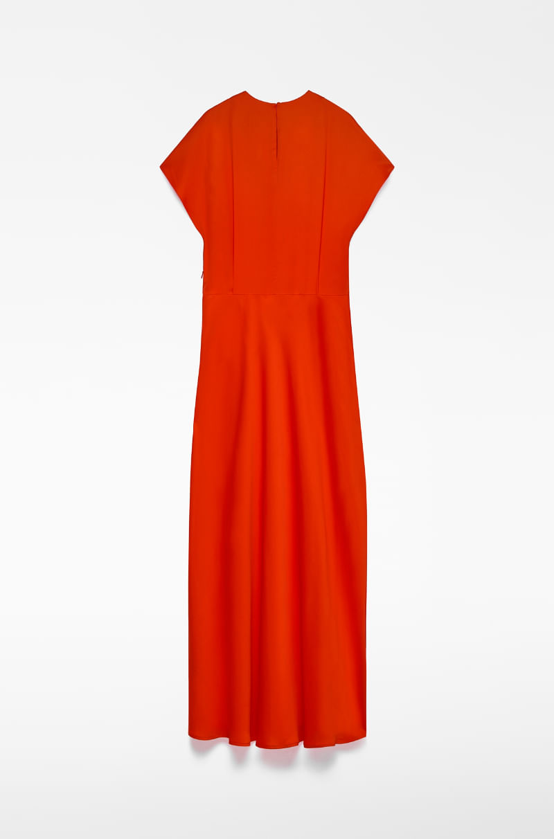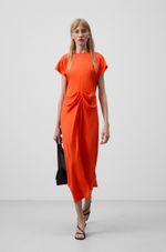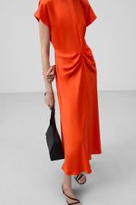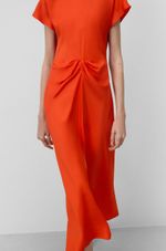 Vestido semientallado viscosa responsable mujer. Manga corta caída. Frunce en cintura. Cierre cremallera en espalda. Largo maxi.