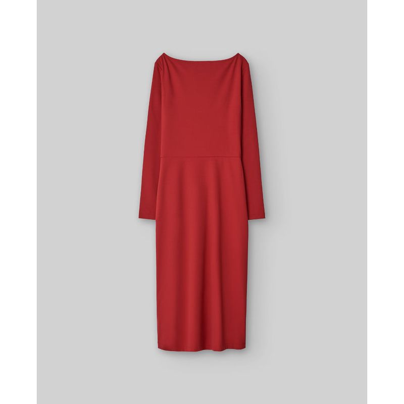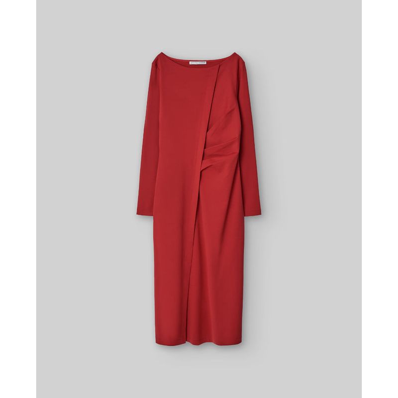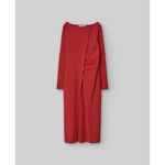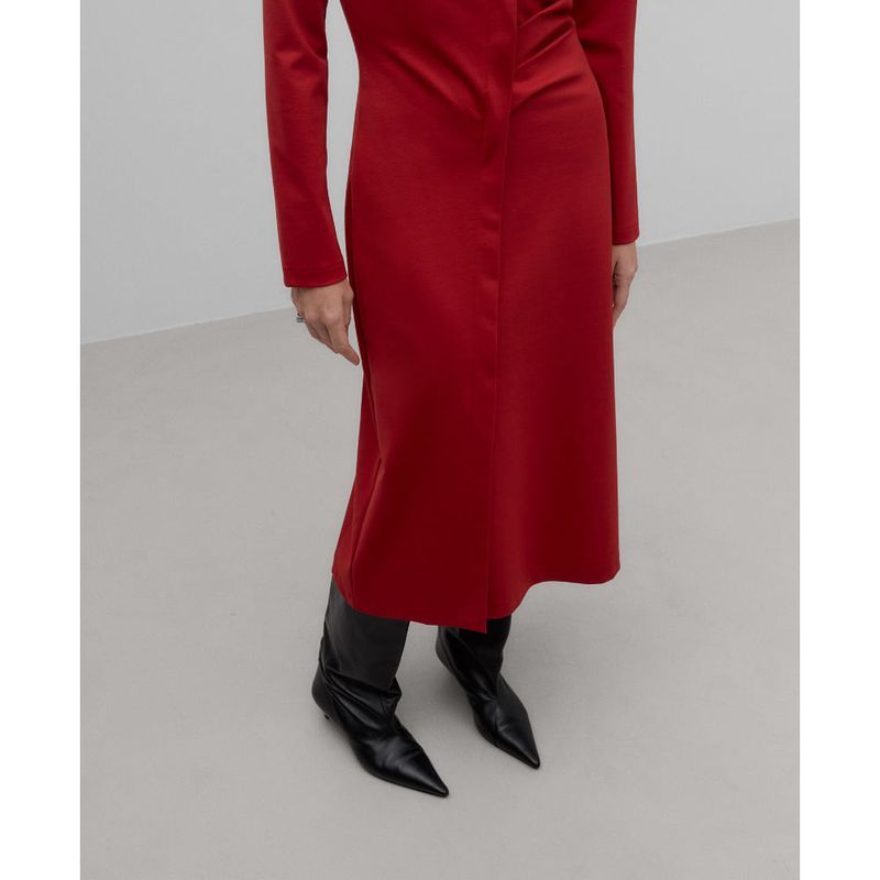 Vestido midi viscosa responsable rojo mujer. Manga larga. Escote barco. Pliegue con frunce en delantero. Abertura al final del pliegue. Línea entallada. poliamida 49% viscosa 44% elastano 7%