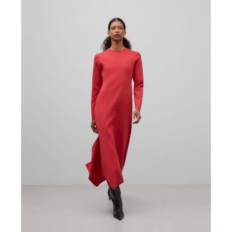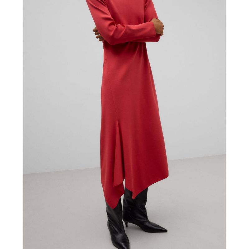 Vestido punto asimétrico mujer. Cuello caja. Manga larga. Godet lateral. Composicion General: viscosa 63% poliamida 37% Composiciòn Exterior; viscosa 63% poliamida 37%